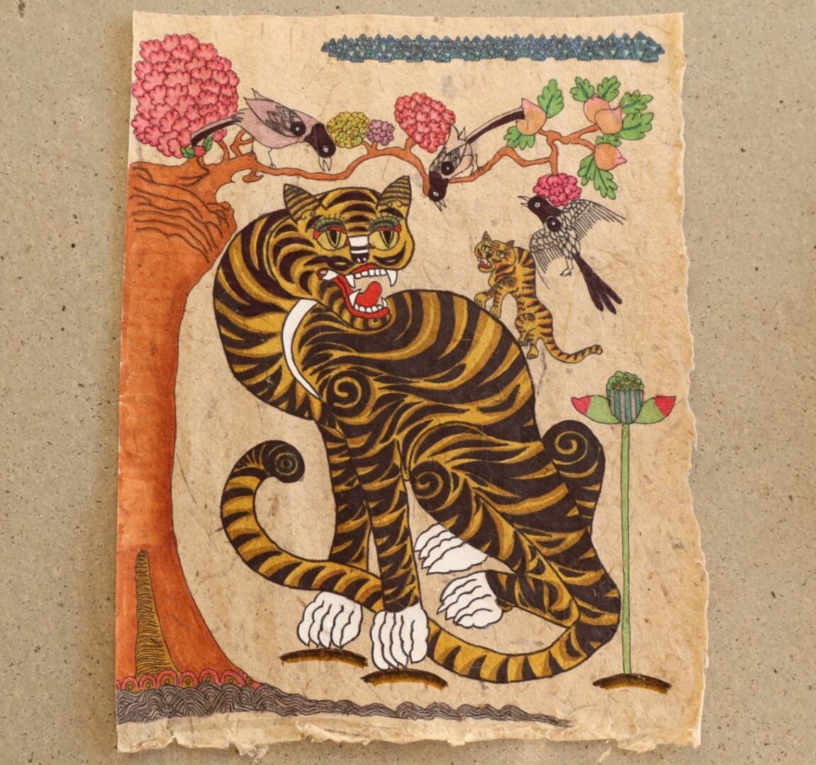 大海のように受け入れ育み創り出す。命の原点であり豊かそのものの母虎に惹かれ導かれ描きました。