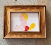 水彩 鉛筆 コットンペーパー 縦6.8cm 横9.9cm 額 縦10cm 横12.8cm 厚さ1.8cm どこかを見据える肝の座ったあそびん皇子0歳