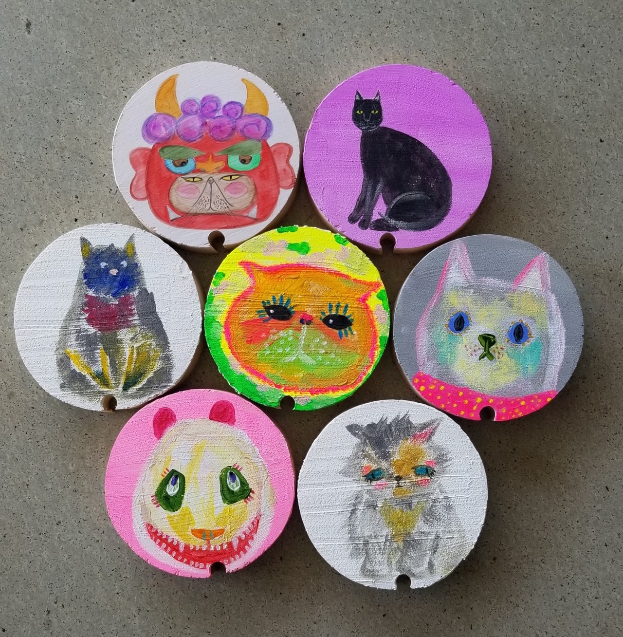 ペット用フードボウルスタンド制作時に出る廃材をキャンバスにしています